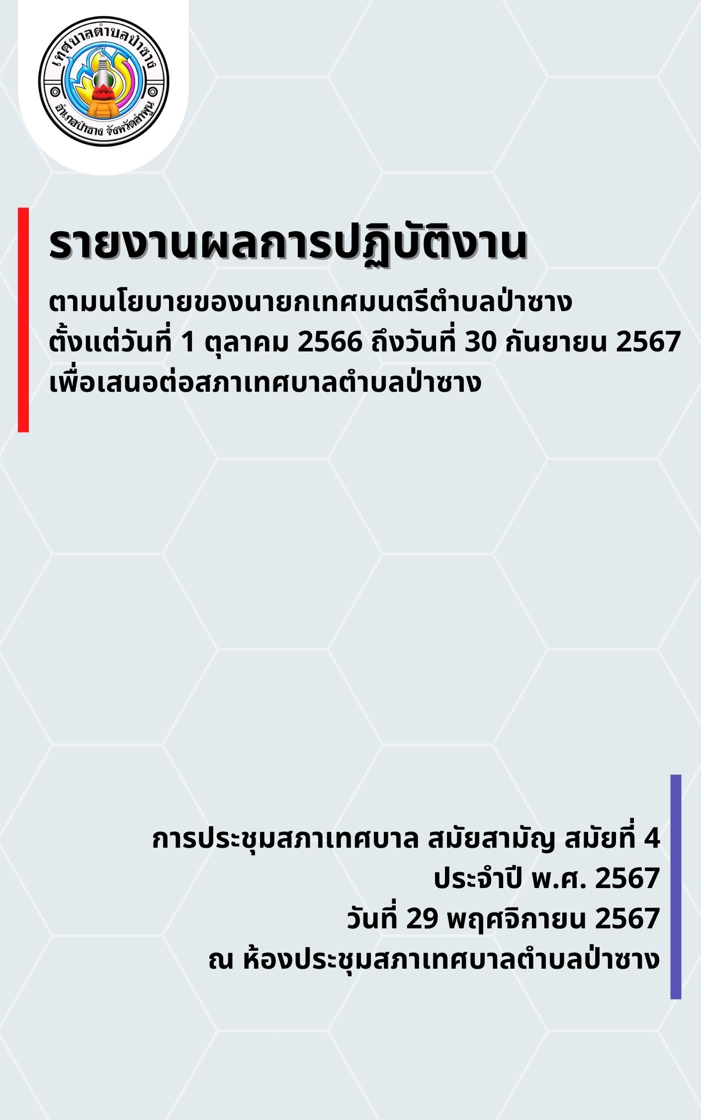 ที่ได้แถลงไว้ต่อสภาเทศบาลตำบลป่าซาง ประจำปีงบประมาณ พ.ศ.2567