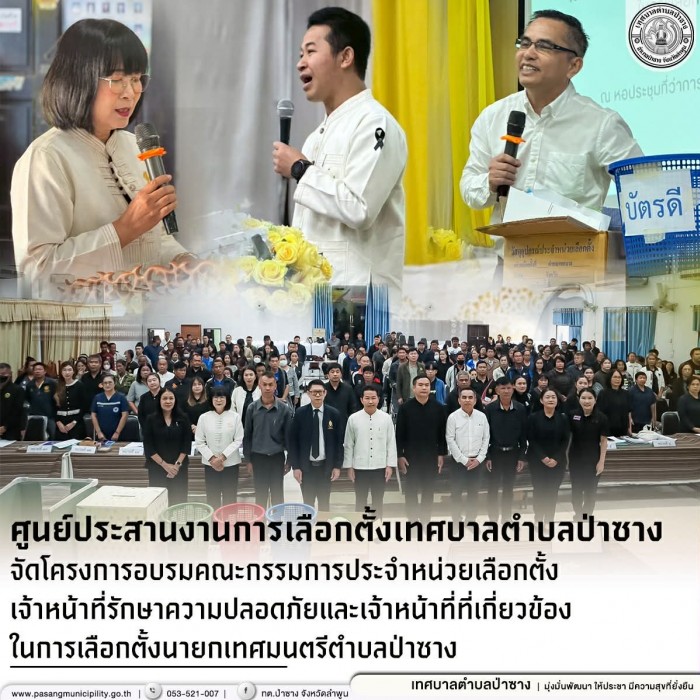 . วันพฤหัสบดีที่ 18 ธันวาคม พ.ศ.2568 นายภัทรพล ผัดดวงธรรม นายอำเภอป่าซาง เป็นประธานเปิดการจัดอบรมคณะกรรมการประจำหน่วยเลือกตั้ง เจ้าหน้าที่รักษาความปลอดภัยและเจ้าหน้าที่ที่เกี่ยวข้องในการเลือกตั้งนายกเทศมนตรีตำบลป่าซาง โดยมี นางสุจิตรา ปงกันทา ประธานคณะกรรมการการเลือกตั้งประจำเทศบาลตำบลป่าซาง เป็นผู้กล่าวรายงาน และมี นายเทพนิมิตร แสนพรหม ปลัดเทศบาลเมืองสุเทพ เป็นวิทยากรบรรยายให้ความรู้เกี่ยวกับกระบวนการ ขั้นตอน ต่าง ๆที่เกี่ยวข้องกับการเลือกตั้ง พร้อมทั้งได้มี เจ้าหน้าที่จาก สำนักงานคณะกรรมการการเลือกตั้ง จังหวัดลำพูน ร่วมพบป่ะพูดคุยกับผู้เข้ารับการอบรมฯ
