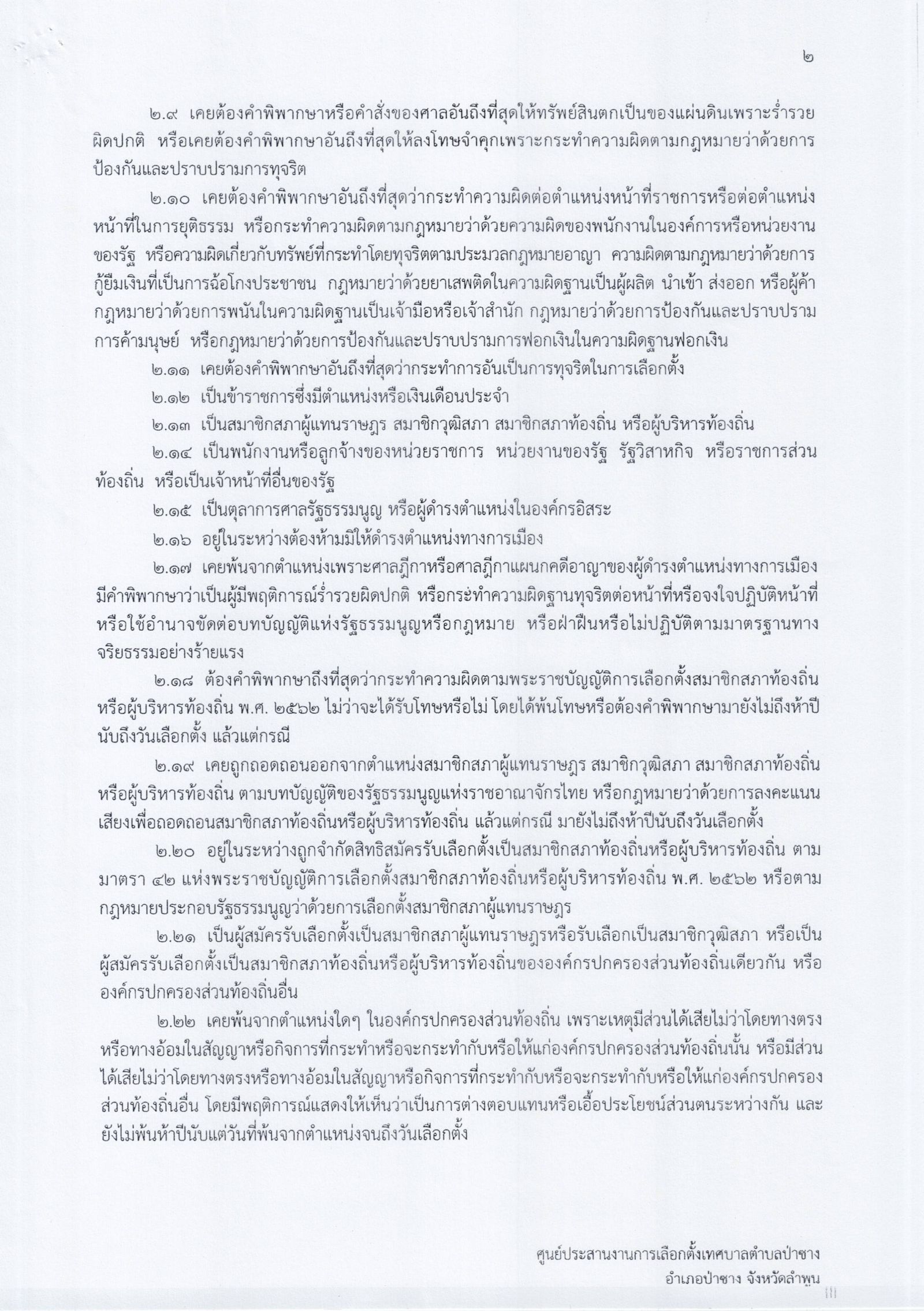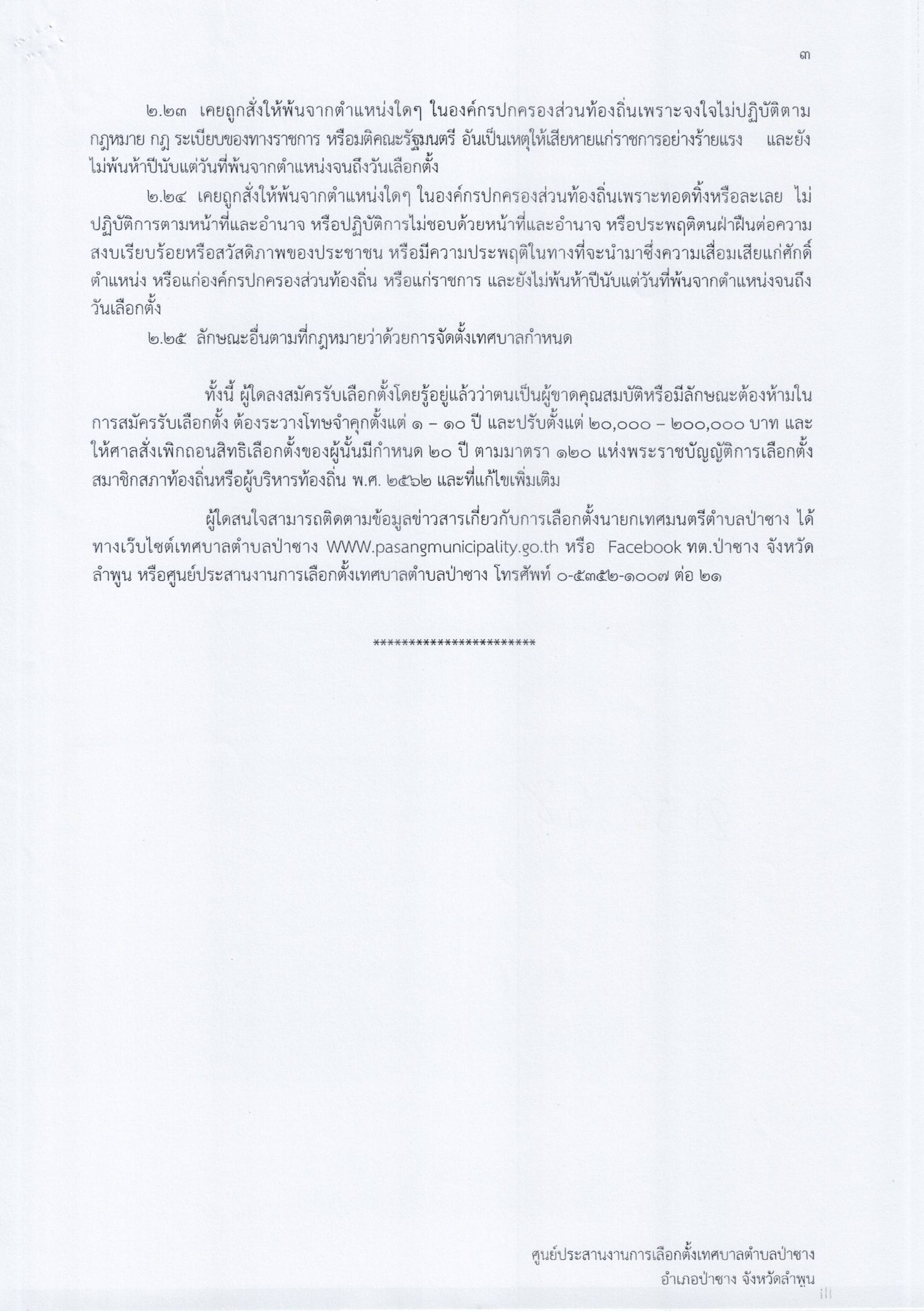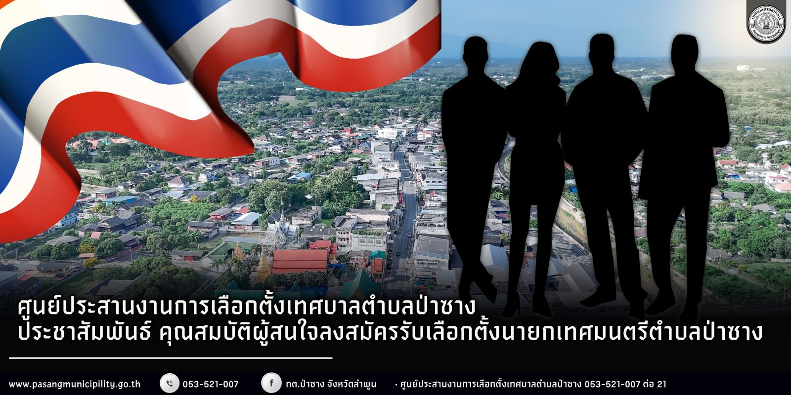 ศูนย์ประสานงานการเลือกตั้งเทศบาลตำบลป่าซาง ประชาสัมพันธ์ คุณสมบัติผู้สนใจลงสมัครรับเลือกตั้งนายกเทศมนตรีตำบลป่าซาง