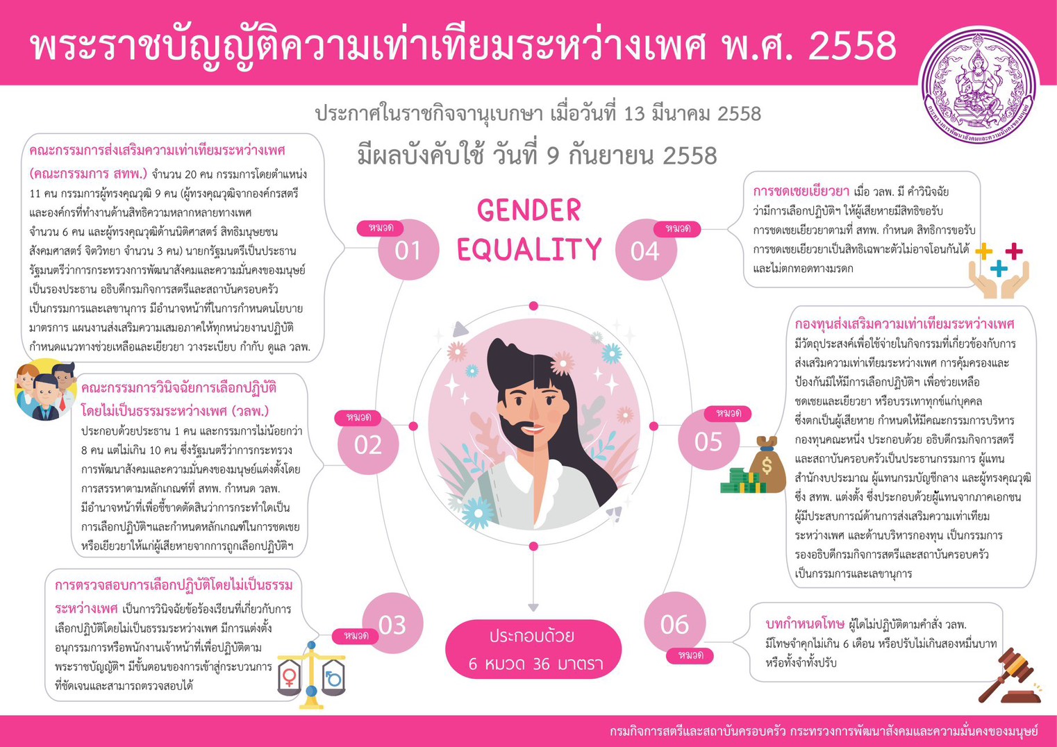 ประชาสัมพันธ์ สาระน่ารู้ "พระราชบัญญัติ ความเท่าเทียมระหว่างเพศ พ.ศ.2558"