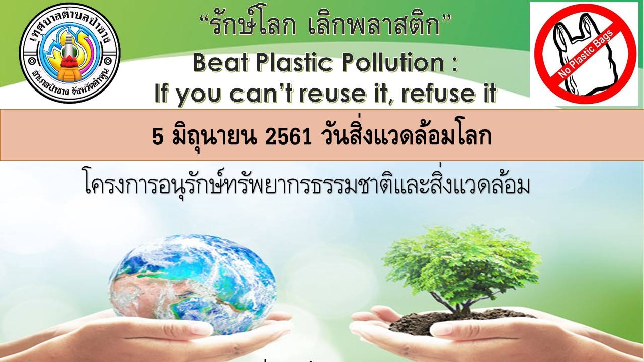 ขอเชิญชวนร่วม กิจกรรม “รักษ์โลก เลิกพลาสติก” Beat Plastic Pollution (If You Can’t Reuse It, Refuse It) โครงการอนุรักษ์ทรัพยากรและสิ่งแวดล้อม